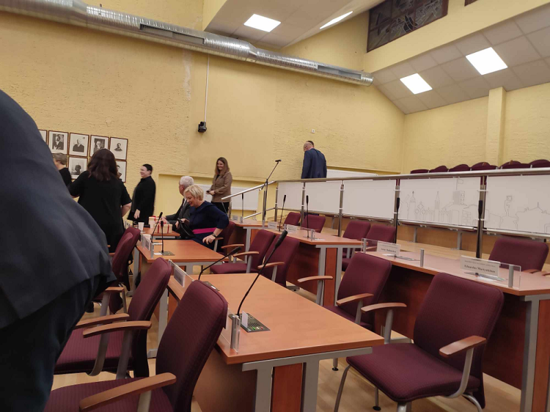 Pirmieji, ko gero, savo vietas užėmė mero Piziaus komandos svita, pabėgiojo šen bei ten. Renkasi deputatai, kaip nekeista – visi. Na, kas praleis progą pripūsti savo politinių bezdalų maišus ir iš lėto išleisti iš jų burbuliukus. Maloniai pakalbu su žavia dama.