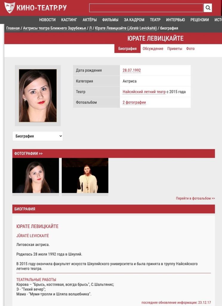 Tačiau R. Žemaitaitis savo viešame pareiškime iškėlė ir kitą, politiškai jautrų aspektą. Jis nurodė, kad administracinės atsakomybės sulaukusi kultūros darbuotoja savo kūrybinę veiklą pristato Rusijos internetinėje platformoje, kur ji apibūdinama kaip teatro aktorė iš „artimojo užsienio“.